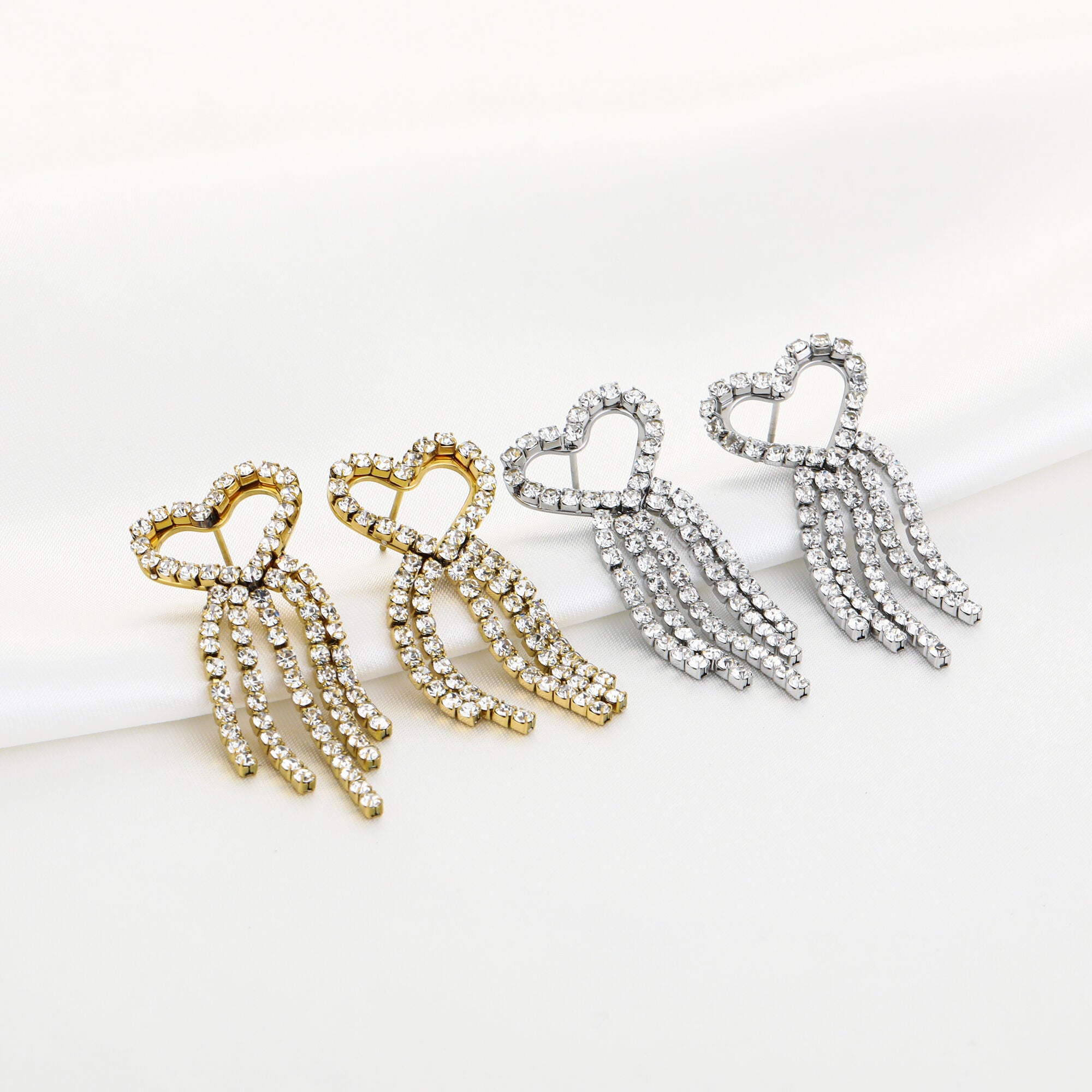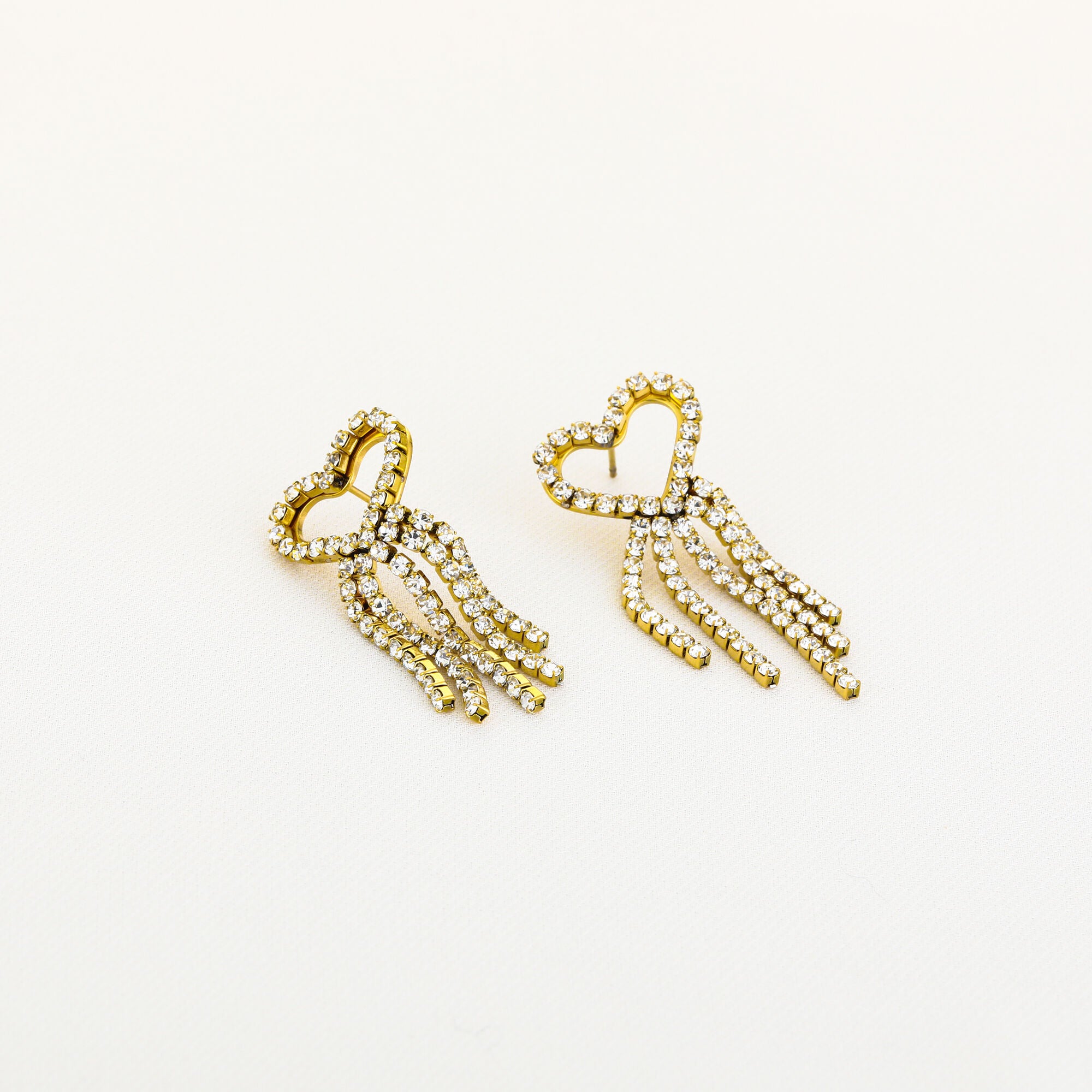 Deze oorbellen steentjes en hart zijn een musthave voor je sieraden collectie! Deze oorbellen zijn makkelijk te combineren met andere oorbellen, maar kunnen ook goed op zichzelf gedragen worden voor de ideale jewellery party!